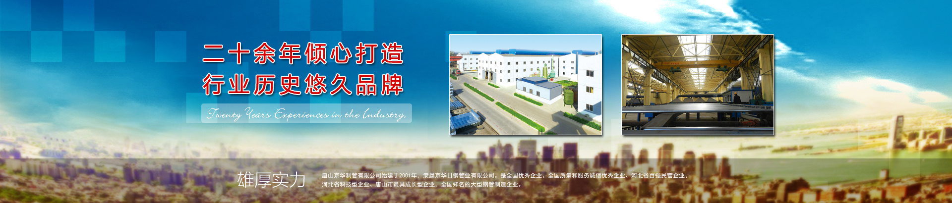 J9平台始建于2001年,隶属京华日钢管业有限公司。位于河北唐山开平高新技术产业开发区,是国家高新技术企业、全国优秀企业、河北省科技型企业,全国知名大型焊接钢管制造企业。