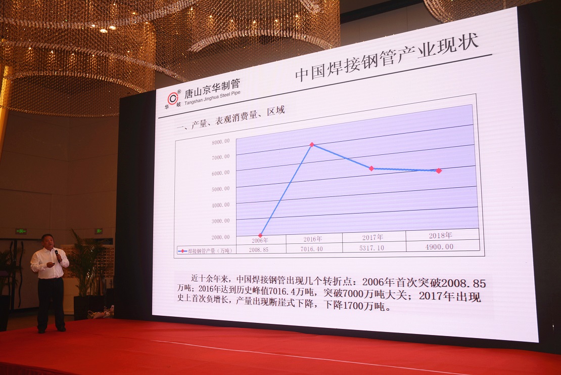 总经理温朝江在会上作了《在转变经营理念创新发展中寻求新出路》的主题演讲。从中国焊接钢管产业现状,焊管在管材类产品中的定位,当前的经济形势,转变经营理念不断创新是未来发展的新出路四个方面展开深入分析。