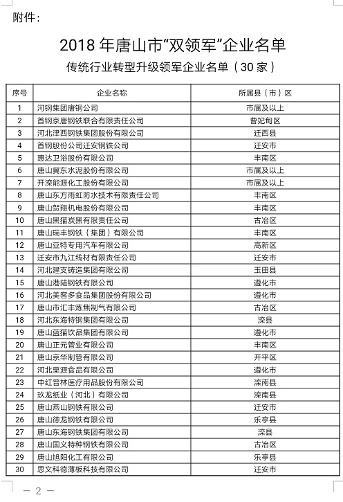 唐山京华获评2018年度唐山市传统行业转型升级领军企业