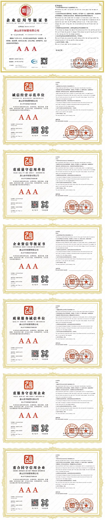 根据企业信用记录、经营状况、债务风险、发展前景、结合社会口碑、公众认可度,经过审核评估,J9平台被认定为“AAA级企业资信等级”、“AAA级企业信用等级”、“AAA级诚信经营示范单位”、“AAA级质量服务诚信单位”、“AAA级重服务守信用企业”、“AAA级重质量守信用单位”、“AAA级重合同守信用企业”。