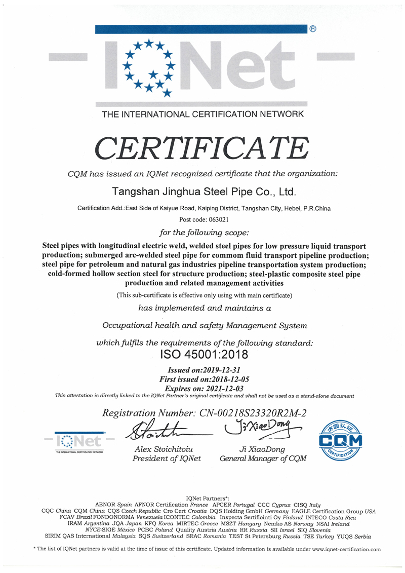 WELCOME TO Tangshan Jinghua Steel Pipe Co.,Ltd.